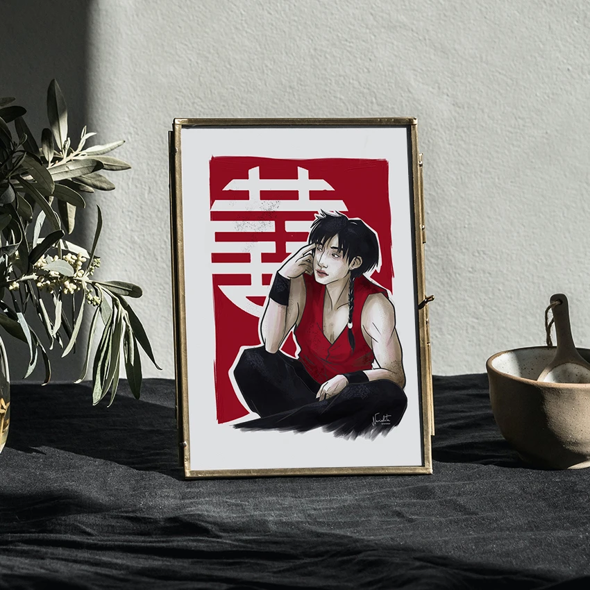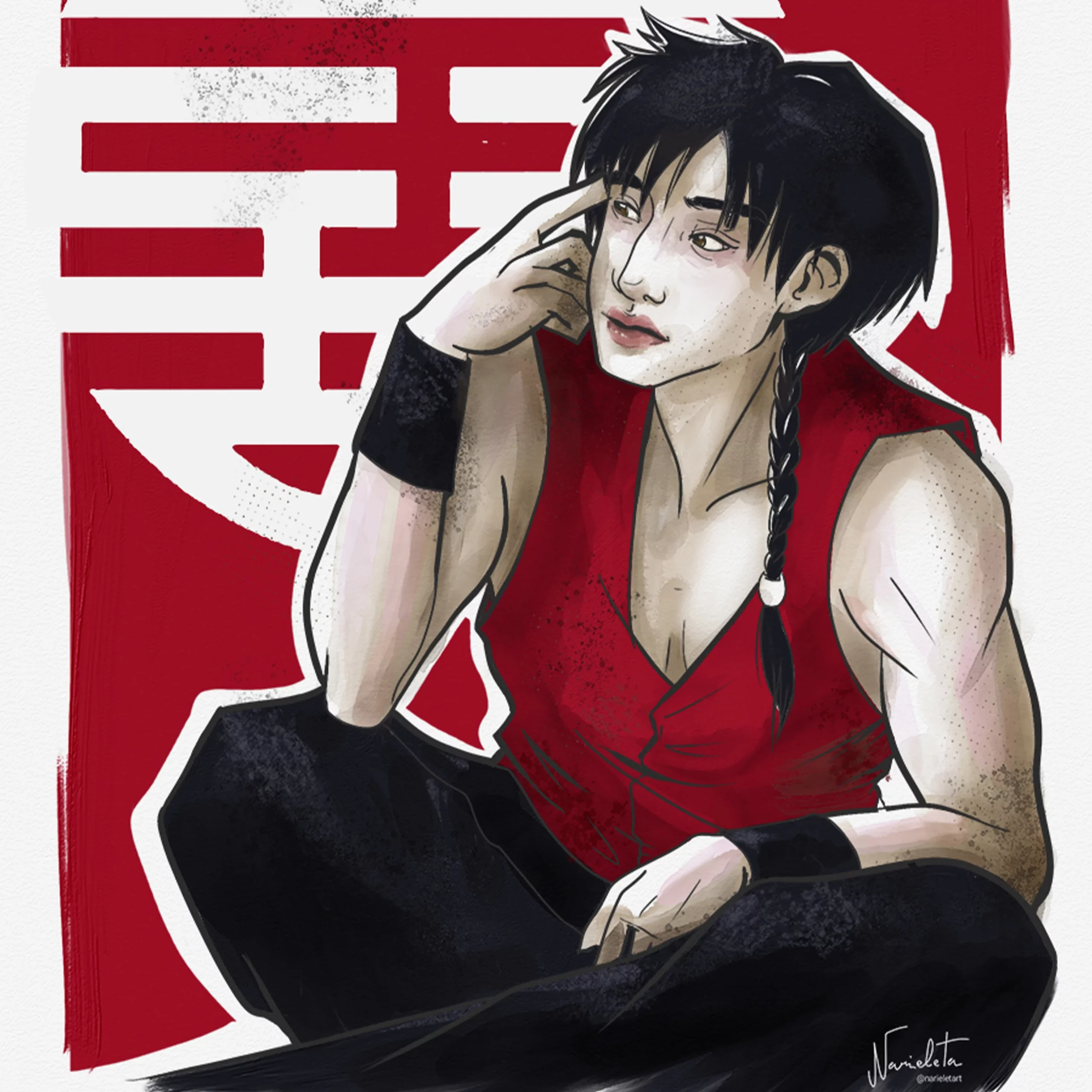 Ilustración de Bangchan de Straykids inspirada en Ranma 1/2.