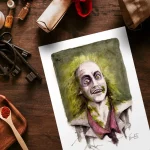 Ilustración de Beetlejuice, el bioexorcista del inframundo, basada en el personaje de las películas de Tim Burton. Realizado totalmente en acuarela.