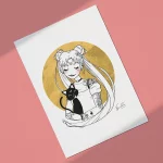 Ilustración inspirada en Usagi Tsukino (Bunny), de Sailor Moon. Esta ilustración está inspirada en la estética tatuaje, dándole una estética punk.
