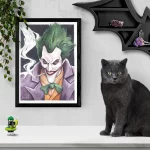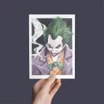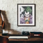 Todos los grandes héroes se hacen grandes por la grandeza de sus villanos, y el villano más icónico para mí es El Joker. Esta ilustración está inspirada en el diseño clásico, incluyendo detalles del Joker de Jack Nicholson, la locura del diseño de Azarello y Brian Bolland, el ilustrador del famoso Joker de “La Broma Asesina”.