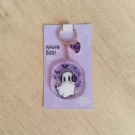 Kawaii boo keychain: un fantasma kawaii con auriculares de bruja bailando canciones de esqueletos y fantasmas.