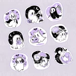 Sticker pack de la colección “Kawaii Boo”, 9 diseños diferentes de unos pequeños fantasmas enmarcados en la festividad de Halloween.