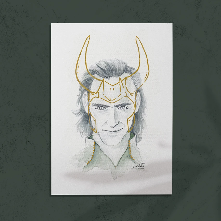 Ilustración de Loki, basada en el personaje televisivo y del comic. Realizado totalmente en acuarela.