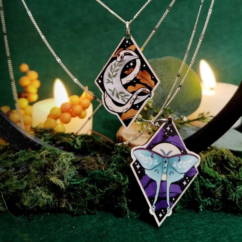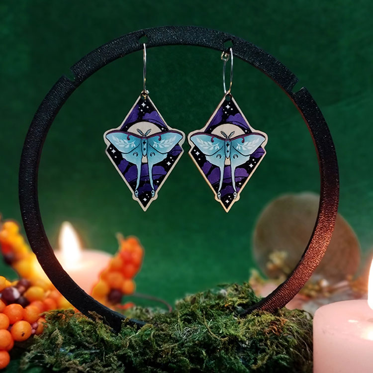 La polilla lunar simboliza transformación y guía en la oscuridad. Este diseño está impreso con alta definición sobre madera y montado con acero quirúrgico para un uso cómodo a diario.